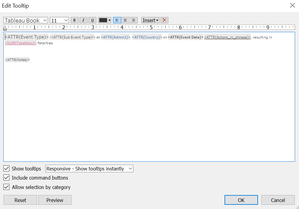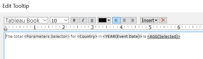 And finally, we include Tooltip by clicking on the Tooltip tab and making the changes as follows (all variables needed should already be within the original Tooltip):