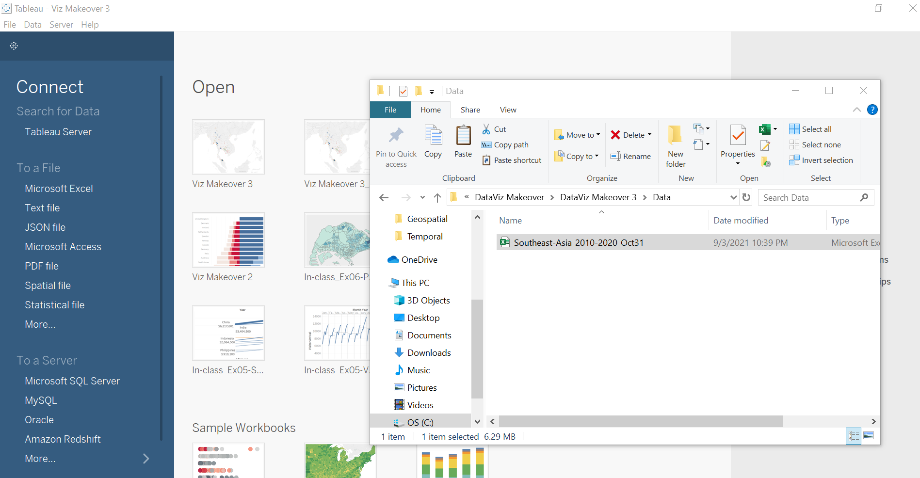After downloading the Southeast Asian 2010-2020 dataset, open up Tableau Desktop then drag-and-drop the downloaded Excel file onto a new tableau main page.