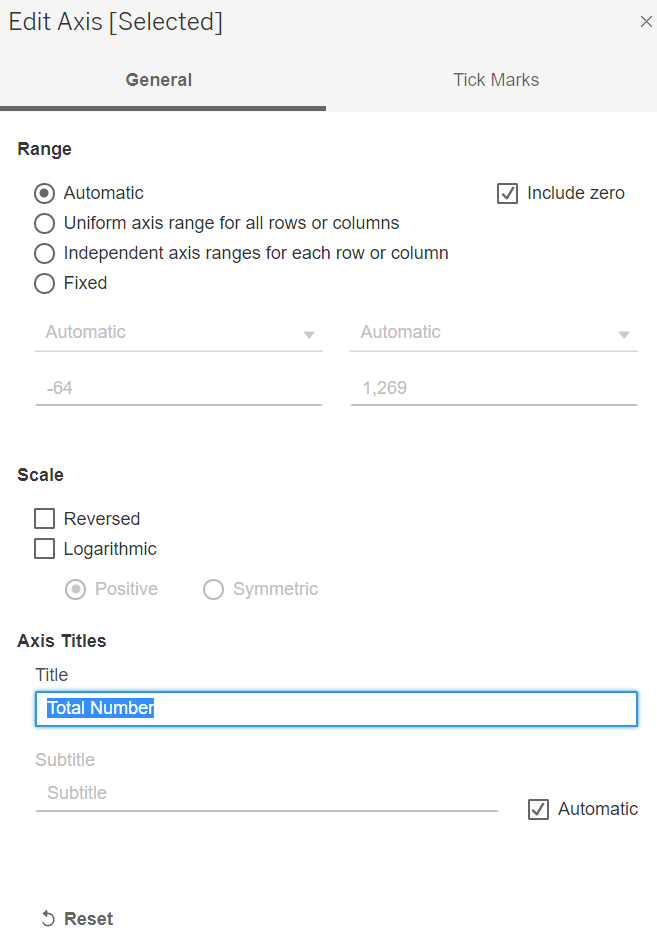 Next, we edit the y-axis title by right-clicking on the axis title, then selecting “Edit Axis”, the screen below will pop up - amend the title to “Total Number” while keeping the other settings unchanged